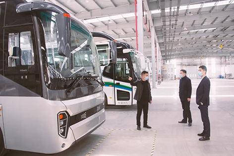 在公司領導的陪同下,王凱翔一行參觀公司自動化生產線,董事長汪先鋒向王凱翔重點介紹了正在生產中的出口沙特朝覲車以及國際先進的沖壓、焊裝、涂裝、總裝生產線,路通智行總經理王凱翔對恒天領銳業(yè)內領先的技術體系、成熟完善的制造、質量體系及國際先進的裝備給予了高度評價。