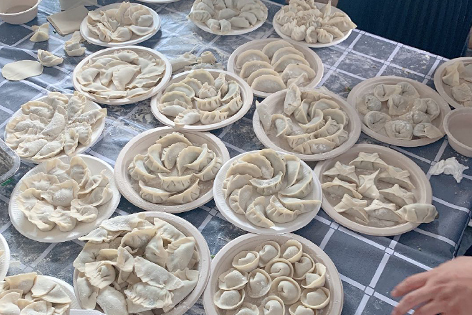 大家熱情高漲,積極參與,紛紛卷起袖子開始包餃子。